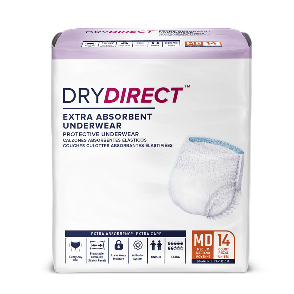 Dry Direct Ultimate Protective Underwear is our highest rated, maximum absorbency underwear style product – appropriate for overnight use and extended wear of up to 10 hours. This is our flagship underwear and is a premium incontinence product that is leakproof and exceptionally soft and comfortable. Our Ultimate Protection Underwear delivers the highest comfort and best incontinence performance in terms of leak protection and exceptional extended-wear absorbency.