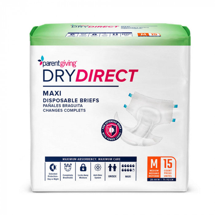Dry Direct Maxi Briefs is our finest tape-on overnight brief for heavy absorbency. These briefs hold over 5 cups of void (multiple voids) locked away from sensitive skin – for extended wear of 8 plus hours. Our Maxi briefs are noticeably softer and more comfortable than others in the marketplace – with a luxurious top sheet and side panels– all 100% made in Italy.