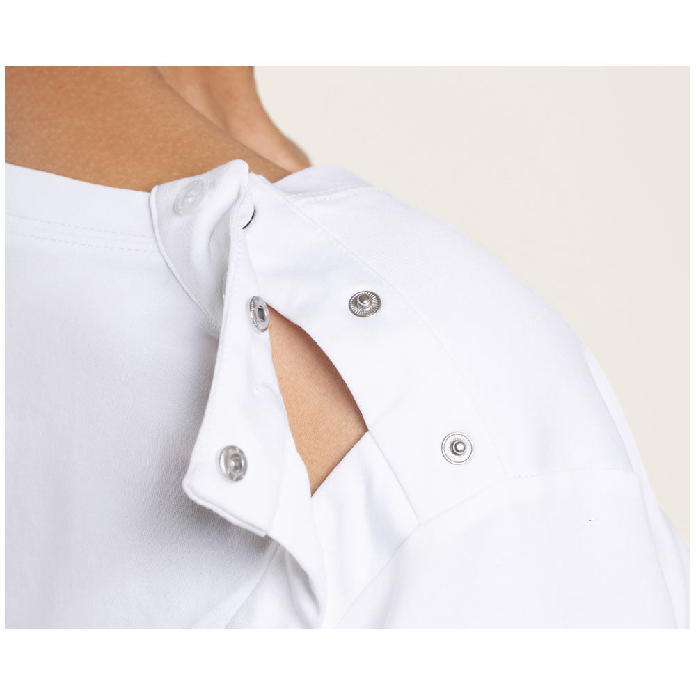 This lovely long-sleeve top from Joe & Bella will have you dressing easy & looking stylish. The unique side-seam closure with hidden snaps opens up the top, allowing you to dress easily & quickly with help from another person. The adaptive features are seamlessly integrated into the shirt’s style: elasticated cuffs look beautiful and provide extra stretch. The top’s brilliant design means you won’t have to raise your arms over your head. Instead, you’ll put it on as simply as a hospital gown.